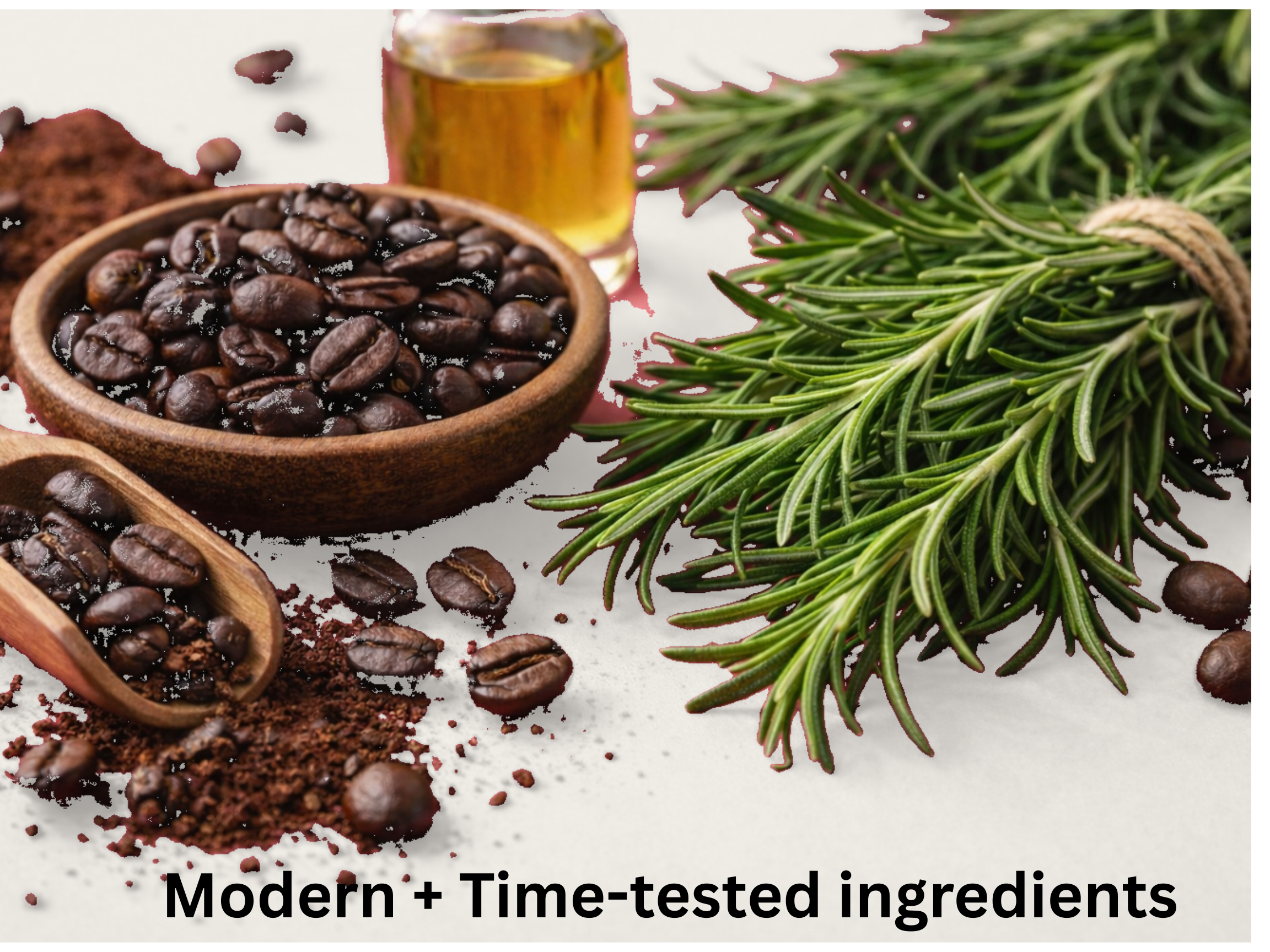 💪 Strength-First Formula — a blend of Ayur herbs, rosemary, and coffee that wake up tired strands and keep your hair looking strong.