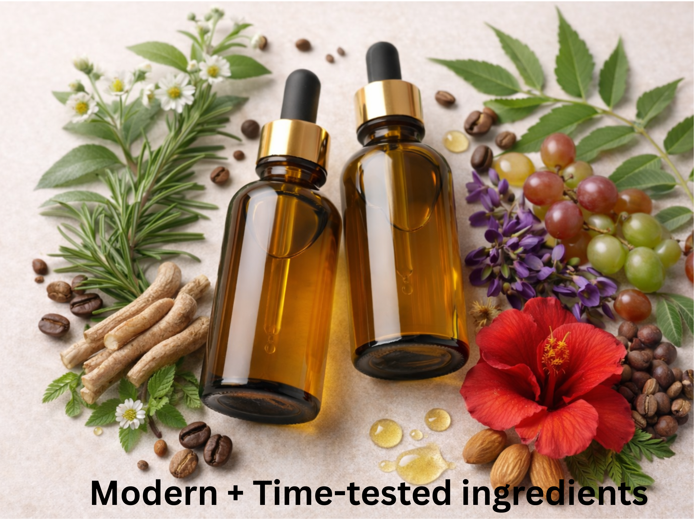 🌿 Ayur-Modern Fusion — slow-cooked herbs meet sleek, lightweight formulas.